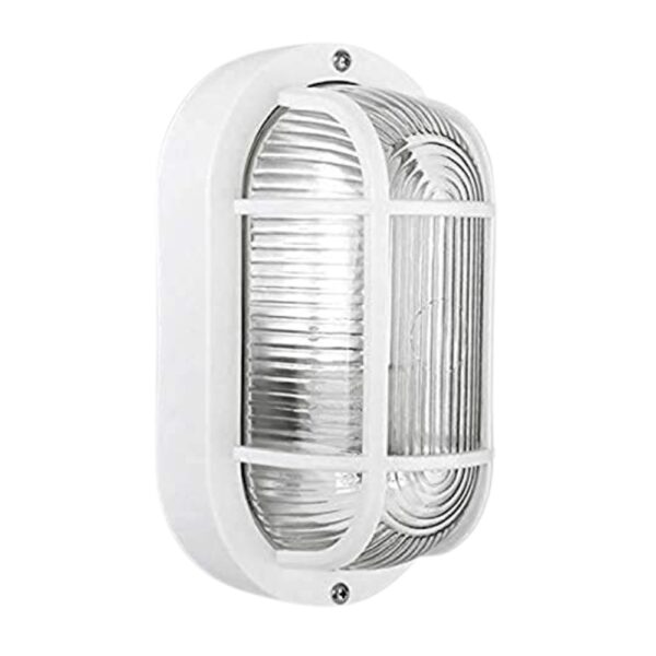 IP65 oval bulkhead with rugged poly lens, E27 base.